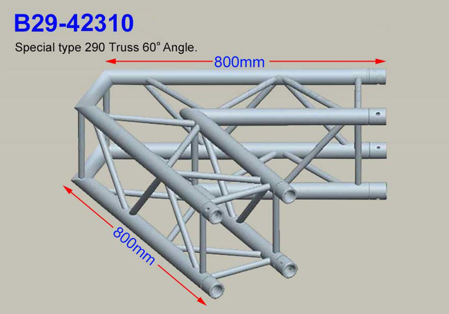 EN AW6082-T6 Legierung : 4 Punkt Aluminum Messestand Traversen B-290, Kantenmaß 29cm, 2 Wege Eck 60°