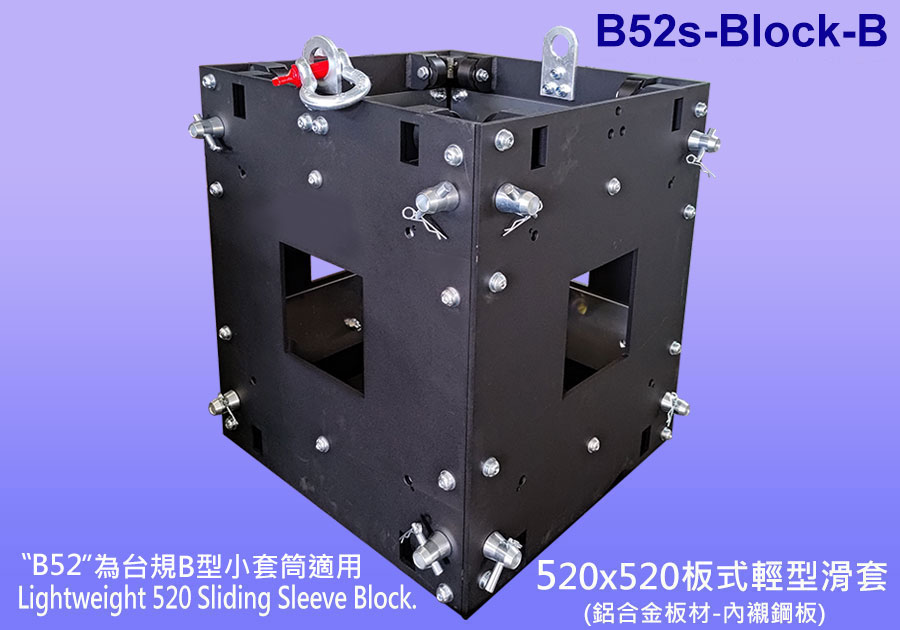 適用於15米以下之橫樑。依需求,產品可加裝 390x390mm, 400x400mm之側邊榫件,成為通用型滑套. |